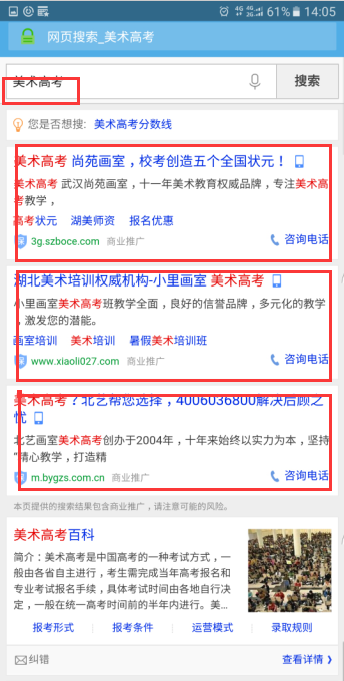 在教培行業(yè)中,不僅口碑十分重要,互聯(lián)網(wǎng)推廣也是非常重要的一個(gè)環(huán)節(jié),加上現(xiàn)在使用手機(jī)來搜索相關(guān)信息的家長逐漸增多,所以藝術(shù)生培訓(xùn)機(jī)構(gòu)是有必要使用移動(dòng)端seo關(guān)鍵詞推廣來提升自己的品牌知名度的。