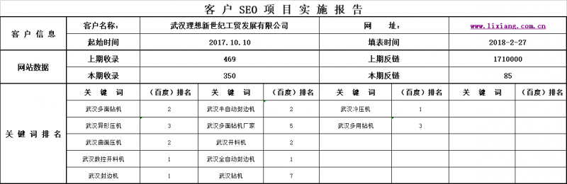 鑫靈銳為武漢理想新世紀(jì)工貿(mào)發(fā)展有限公司提供SEO優(yōu)化外包服務(wù)